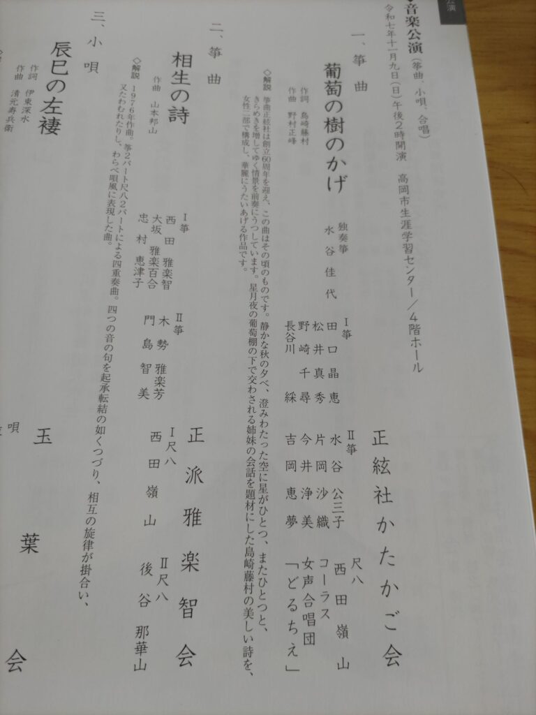 Blog ブログ 2026-03-12 2025-10-20 月 高岡市芸術祭音楽公演 シェア Tweet 11/9(日)14時より、高岡市生涯学習センター4Fホールにてこちらの公演に尺八で出演いたします。是非ご来場ください。 « PASSACAGLIA スペシャルトリオコンサートwith かとうかなこ2025 終演 »